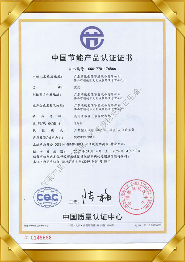 中國(guó)節(jié)能產(chǎn)品認(rèn)證證書(shū)